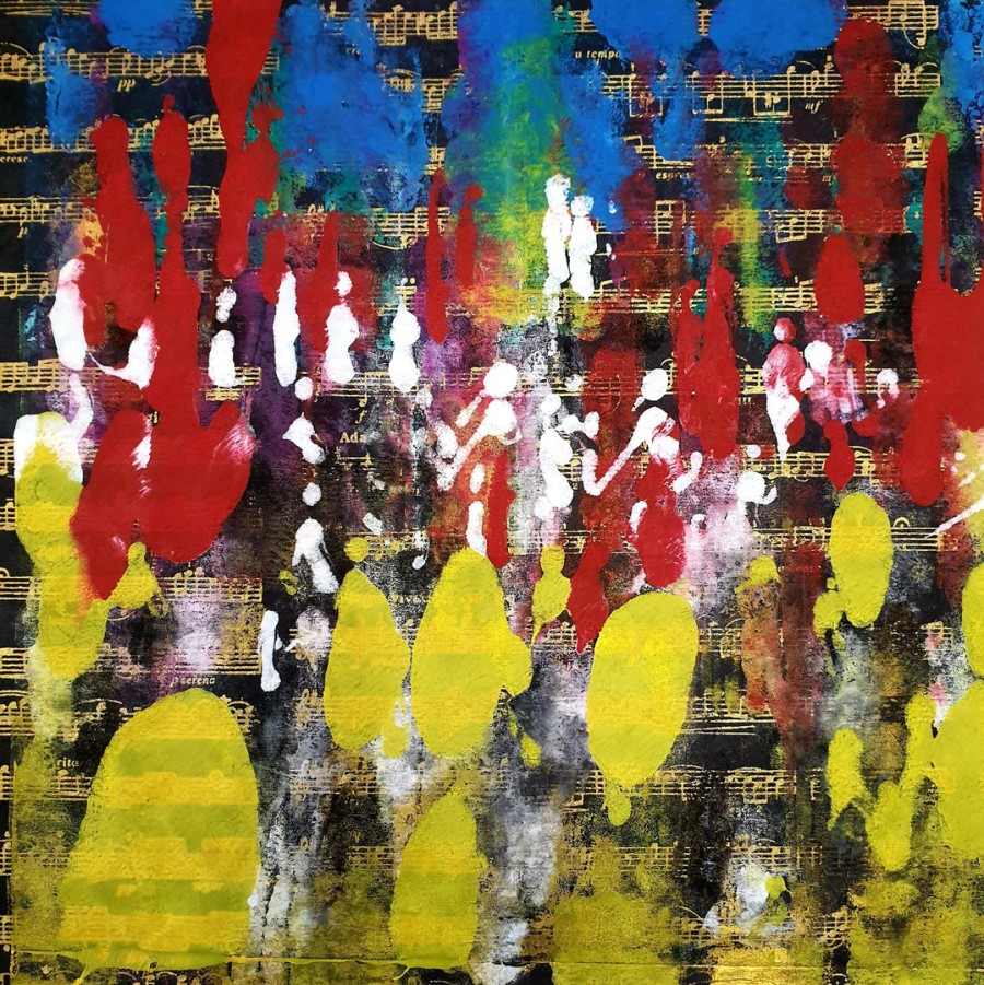 "Das Orchester", Monotypie, 30x30 , m.R.50x50,