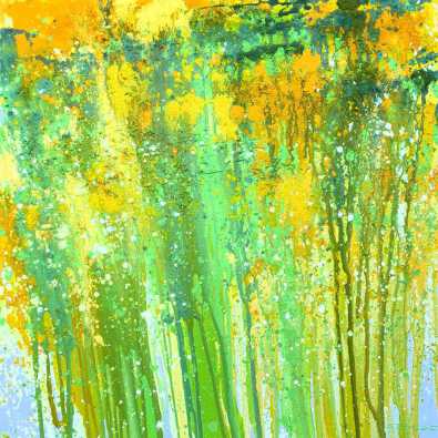Sonnenblumenfeld, 2022, Mischtechnik auf Leinen, 100x100